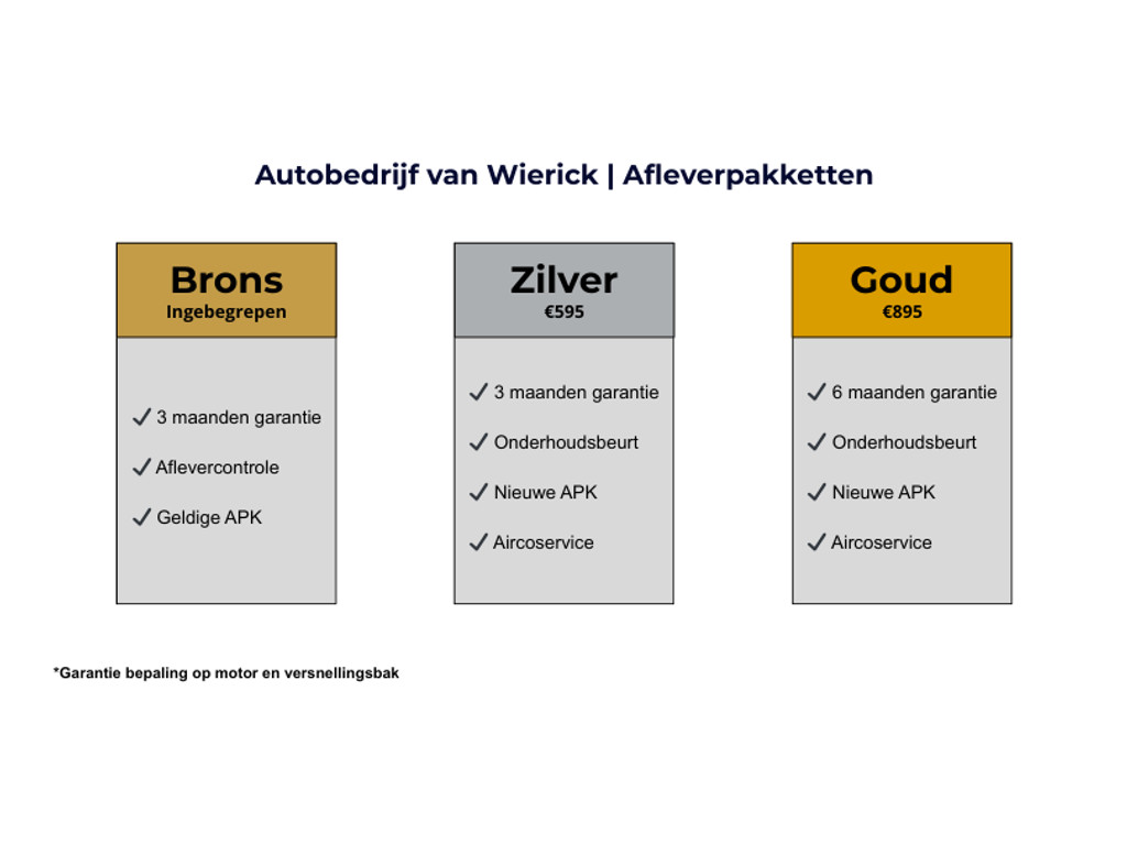 U kijkt hier naar een van Wierick Occasion die standaard door onze werkplaats technisch is gecontroleerd! De verschillende afleverpakketten en de zekerheden die wij u bij het leveren van de auto geven, kunt u zien op de foto van de afleverpakketten welke is toegevoegd aan de fotoreportage.
